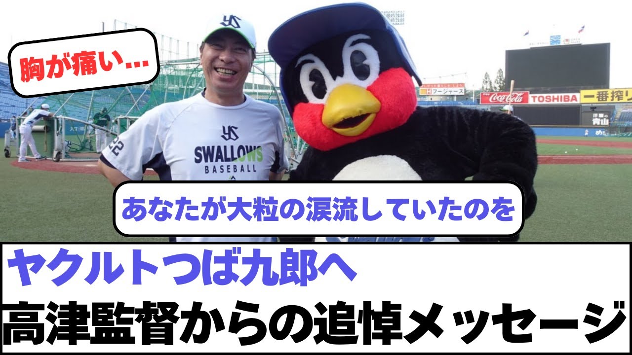 ヤクルトつば九郎へ、高津監督からの追悼メッセージ