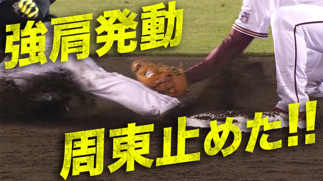 リプレー検証に持ち込まれる際どいタイミング。東北楽天・太田光が光速送球で周東佑京の盗塁を阻止。強肩発動で止めた!!