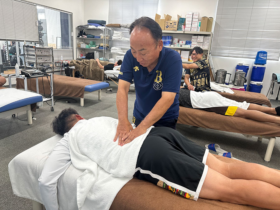 トレーナー陣で最年長となっても自身の経験を過信しなかった。「温故知新ですね」。身につけた手技療法や鍼灸技術を軸に、新しい知識も貪欲に学び、選手たちの準備をサポートし続けた。