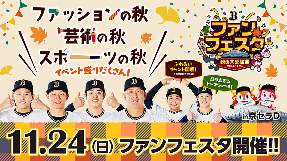 オリックス・バファローズでは、2024年11月24日(日)京セラドーム大阪にて「Bs Fan-Festa2024」を開催いたします!