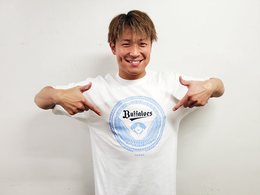 写真:大阪市大正区出身の阿部翔太投手が着用した『座席表Tシャツ(京セラD大阪)』