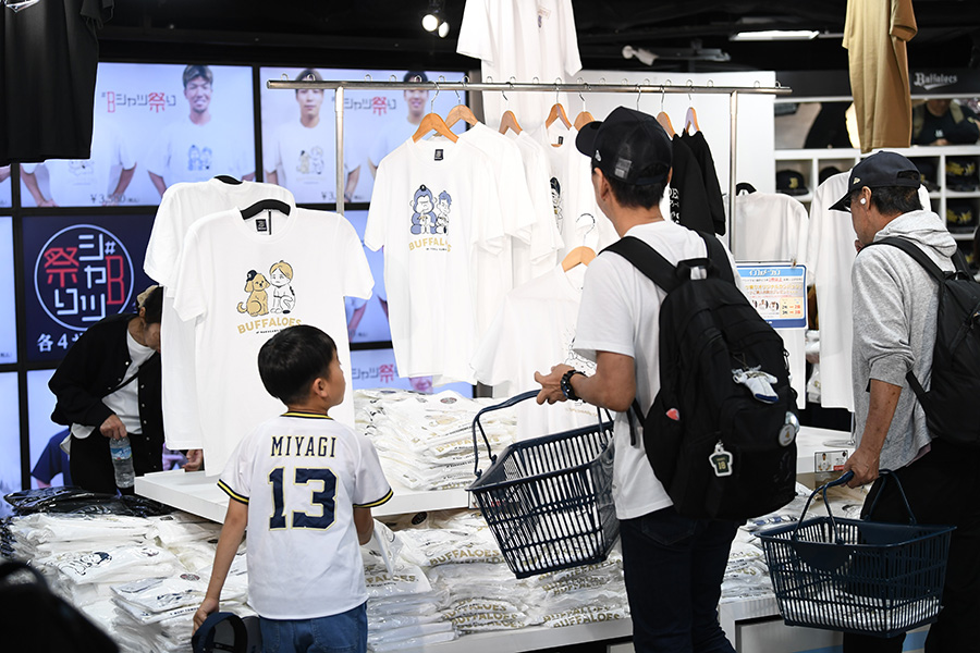 バラエティ豊かなデザインTシャツが一挙販売されるバファローズの「#Bシャツ祭り2024」が6月11日、開幕した。6年目となる今年は過去最多の30種類のデザインが登場。「どれも良すぎて迷う」「かわいいデザインがいっぱい!」と早くもバファローズファンの心を掴んでいる。球団グッズの企画を担当するMD企画グループの粟屋椰南(あわや・こな)が「例年以上の豊作」と口にする今年のBシャツ祭り。こだわりのデザインとオススメについて話を聞いた。