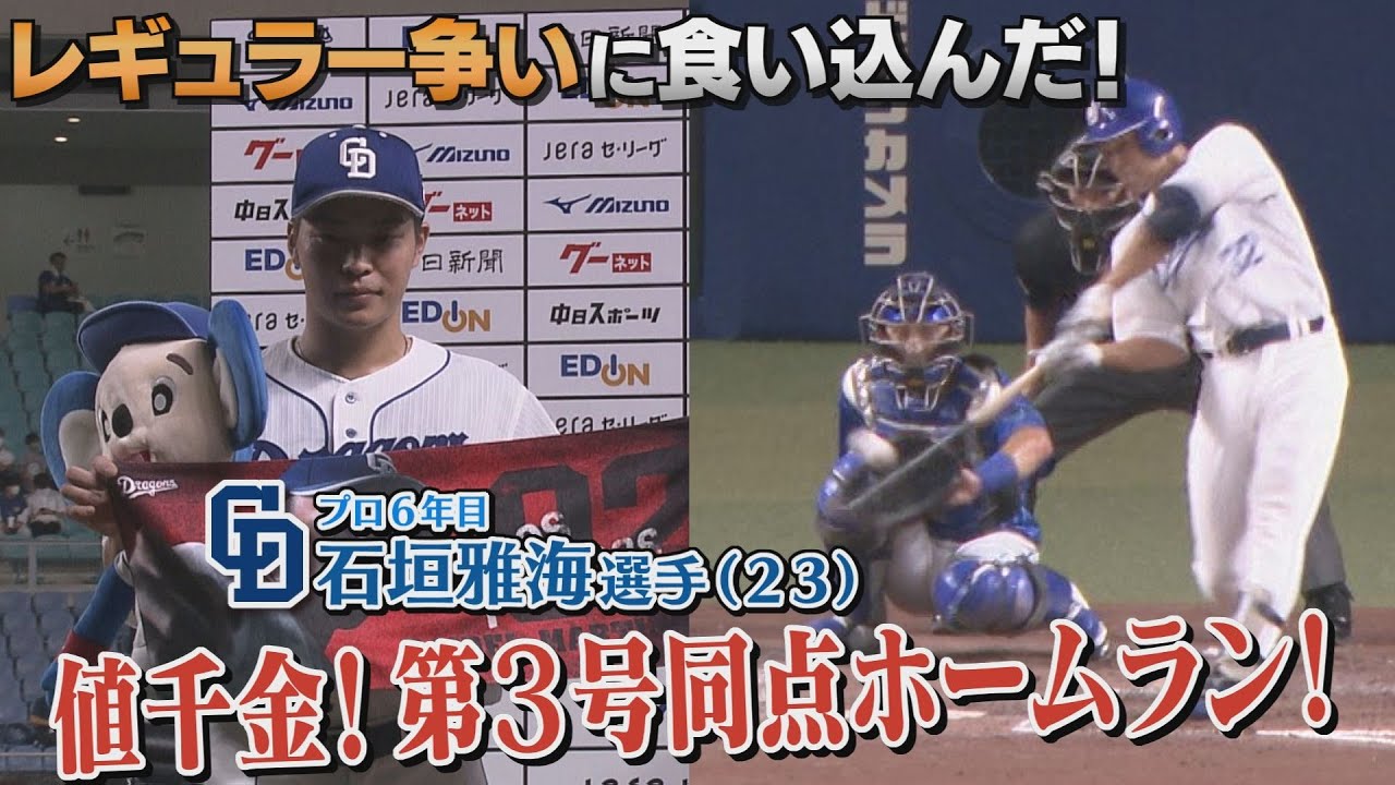 プロ6年目、バッティングでアピールを続ける石垣が2安打1打点1HRの活躍。第1打席でヒットを放つと、1点を追う5回の第2打席、DeNA先発・ロメロから左中間スタンドへ第3号同点弾!先発・松葉の”負け”を消す値千金のホームラン!