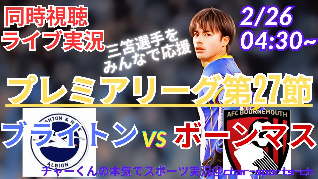 三笘薫フル出場!【サッカー同時視聴】プレミアリーグ第27節ブライトンVSボーンマスをラジオ風に実況ライブ配信! #ライブ プレミアリーグ #ブライトン ライブ配信 #三笘薫 今日 速報 #三苫薫