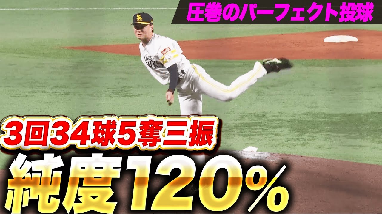 2番手で登板した福岡ソフトバンク・前田純。いきなり村神様の打球にヒヤリとするもスタンドには届かずライトフライ。その後は2者連続内野フライとわずか5球で3者凡退に抑えると、2イニング目は圧巻の3者連続三振。3イニング目も3者凡退2奪三振と3回34球5奪三振のパーフェクトピッチング!! 先発ローテーション入りへ絶好のアピールとなった!!