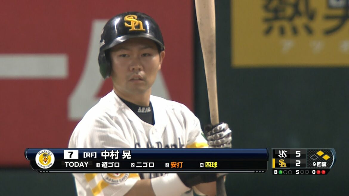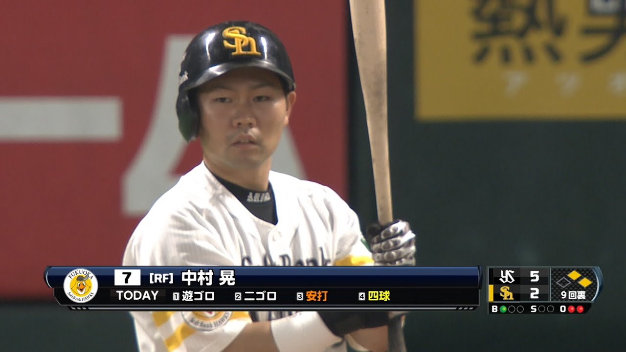 9回、高田のタイムリーで1点を返した後、二死一二塁の場面でセンター前へのタイムリーを放ちさらに1点を追加した。 (5月30日 ソフトバンク-ヤクルト) #プロ野球baseballFukuoka SoftBank HawksNPBスワローズソフトバンクパ・リーグホークスヤクルトヤフオクドーム中村晃東京福岡福岡ソフトバンクホークス NPBHUB.COM | The Fanbase of Nippon Baseball & Nippon Professional Baseball