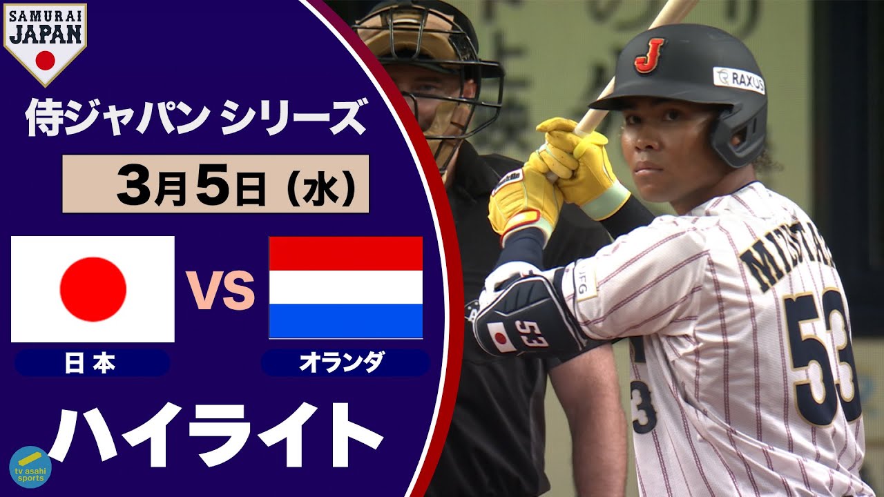 <ハイライト>侍ジャパンシリーズ 日本対オランダ 水谷の先頭打者ホームランで快勝!! WBCまであと1年。 連覇に向け再始動した侍ジャパン!! オランダとの2連戦に臨む。 今日行われた1戦目は、水谷の先頭打者ホームランで幸先良く先制すると、 先発・宮城が3回をパーフェクトピッチング! その後も投打共にオランダを圧倒した。 明日の第2戦はテレビ朝日系列で生放送!! 3月6日(木)よる18時30分~ ※一部地域を除く ※9:00以降はBS朝日にて試合終了まで放送 Saitama Seibu Lions今井達也埼玉西武ライオンズ NPBHUB.COM | The Fanbase of Nippon Baseball & Nippon Professional Baseball