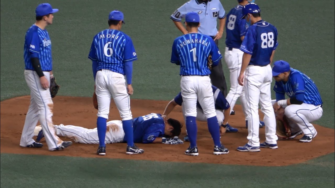 2021年7月11日 中日5-5DeNA(バンテリンドーム) 0-1の6回ウラ一死1,2塁から京田が一塁ゴロ、一塁走者の井領が二塁にスライディングした際に一塁手・ソトの送球が首付近を直撃。(投手:ロメロ) #井領雅貴 #中日ドラゴンズ Chunichi Dragons中日ドラゴンズ井領雅貴 NPBHUB.COM | The Fanbase of Nippon Baseball & Nippon Professional Baseball