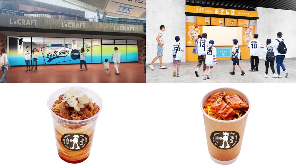 1・3塁側外周のメインコンコース沿いに1店舗ずつオープンする『ONE HAND UDON おさんぽ』では、野球観戦のお供にぴったりなワンハンドのカップに入れたうどんやご飯ものを提供。うどんはこだわりの自家製麺を使用し、コシとなめらかなのどごしが特徴で、温・冷どちらも用意。『明太やまかけうどん』や『肉うどん』など、4種類のうどんを販売予定だ。そのほか、国産うなぎを使用し、濃厚なたれとごはんがマッチする『うなめし』など、ご飯ものも2種類販売する。