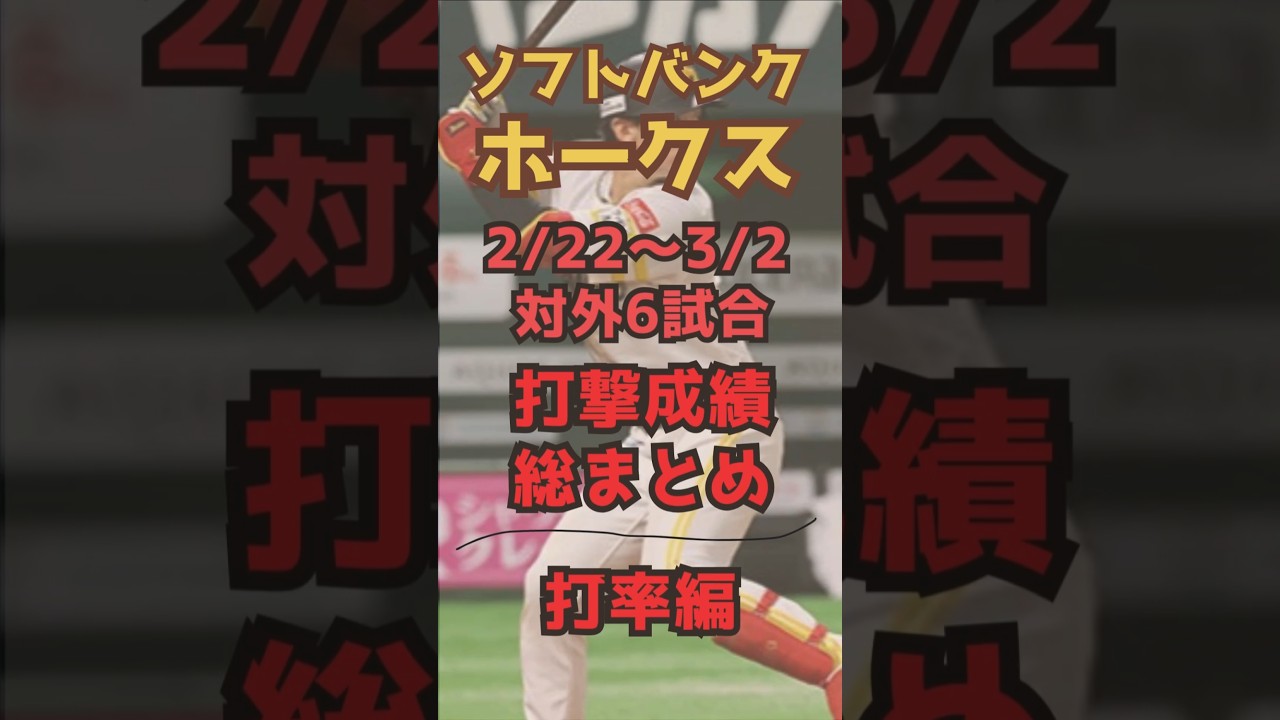【ホークス】オープン戦で魅せろ!3/2時点の打撃成績を総まとめ!打率ランキング編!!【ゆっくり解説】#ソフトバンクホークス #オープン戦 #プロ野球 #正木智也 #リチャード #石塚綜一郎 #笹川吉康