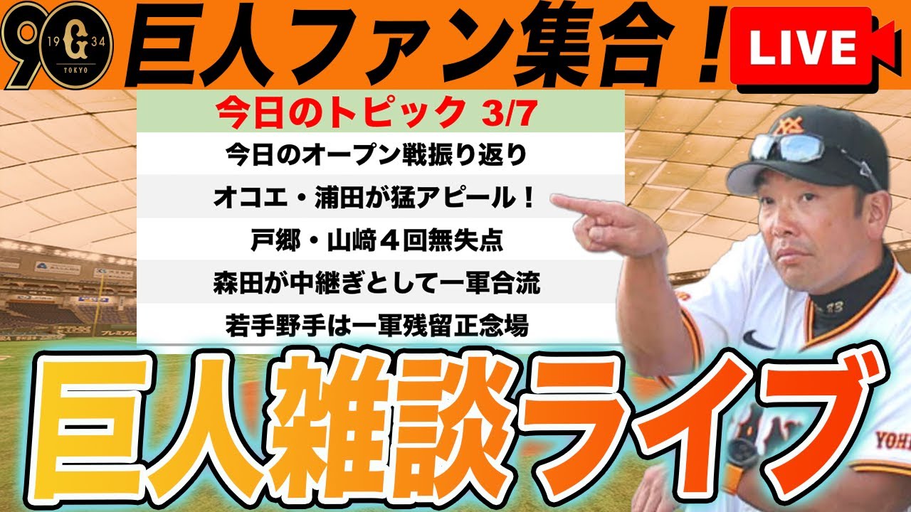【巨人ファン集合】浦田が開幕一軍に前進!山﨑もローテ内定!先発や若手野手の争いを中心にチェックなど雑談 読売ジャイアンツ