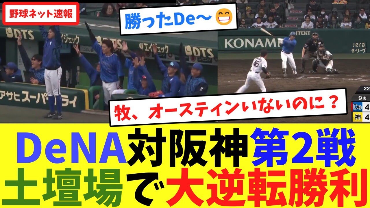 DeNA対阪神第2戦、土壇場で大逆転勝利【ネット反応集】