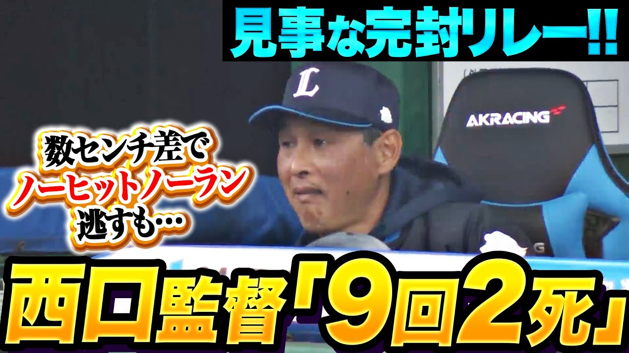 【西口監督・9回2死】獅子投手陣『数センチの差で“ノーヒットノーラン”逃すも…見事な完封リレー!』