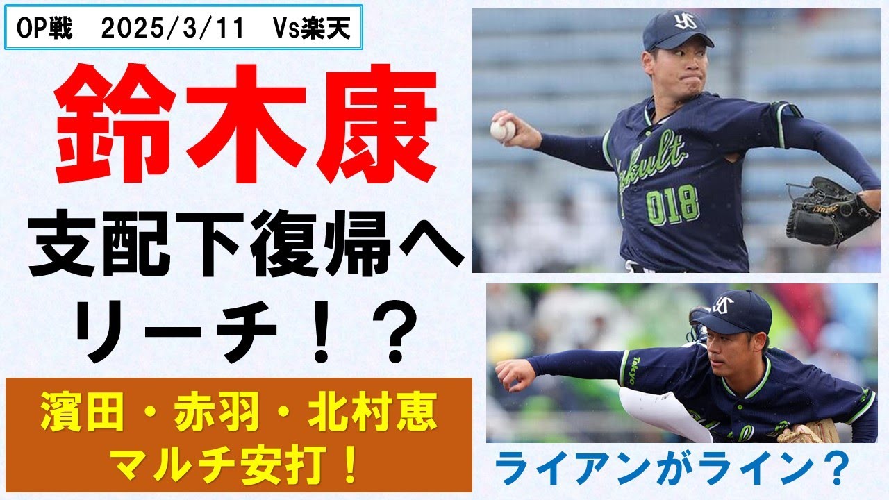 【リーチ!?】鈴木康!支配下復帰へ結果積み上げの2.1回無失点!打線は濱田・赤羽・北村恵がマルチ安打!【ライアンが先発ローテのボーダーライン?】2025/3/11
