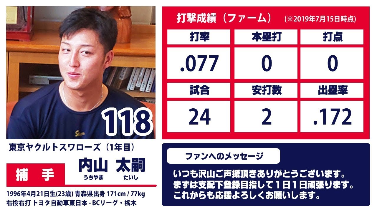 #東京ヤクルトスワローズ #内山太嗣 #栃木ゴールデンブレーブス