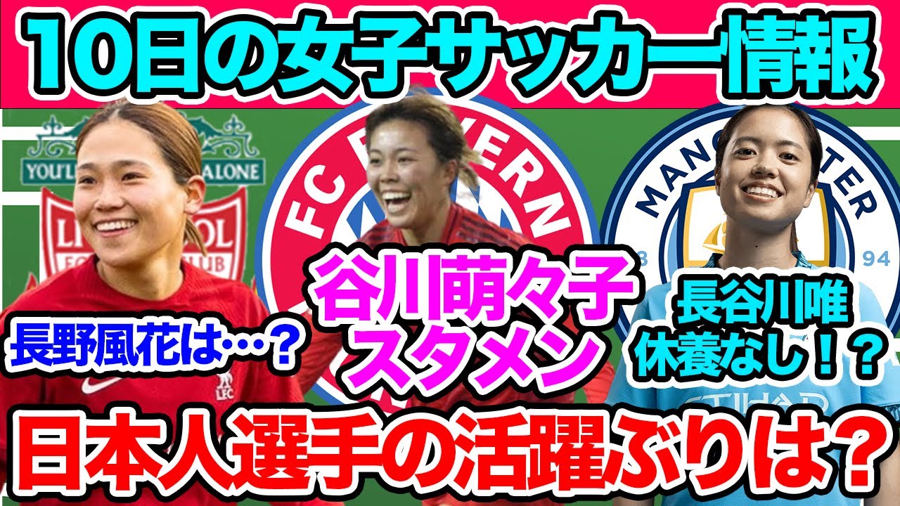 【10日朝の女子サッカー選手情報】長谷川唯らマンチェスター・シティの結果は?谷川萌々子がスタメン出場