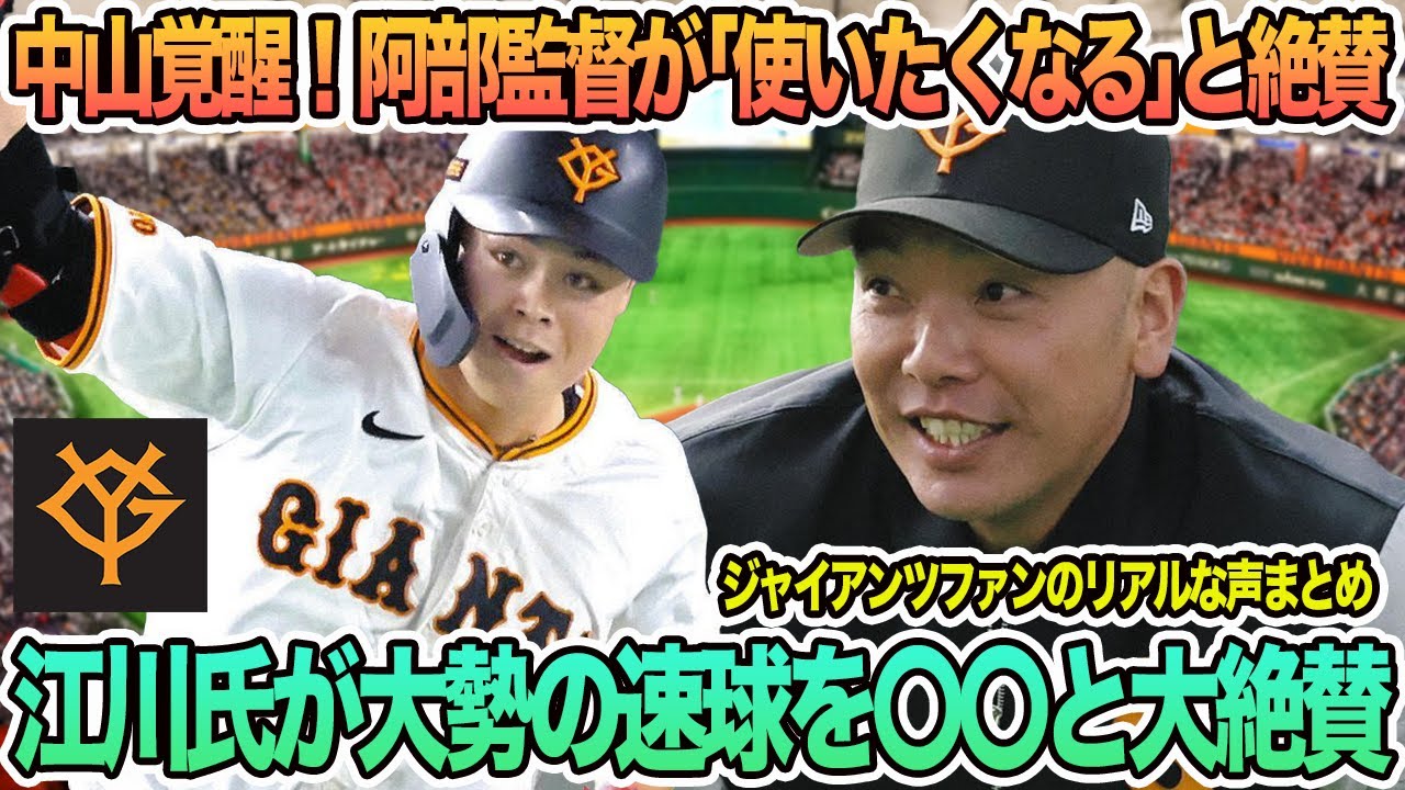 今回の動画は江川氏が大勢の速球を〇〇と大絶賛、中山の覚醒を阿部監督が「使いたくなる」と絶賛とプロ野球ファンの声をまとめた動画内容になります。