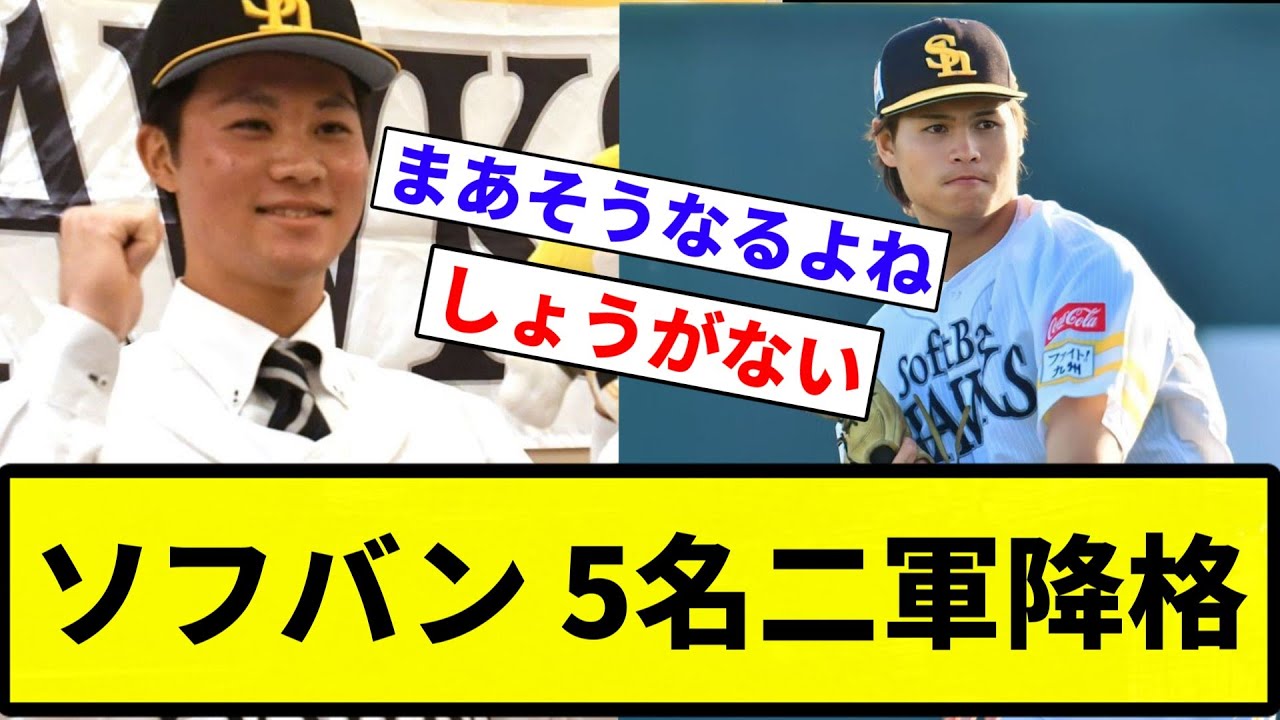 【降格情報】ソフバン 5名二軍降格【プロ野球反応集】【2chスレ】【なんG】