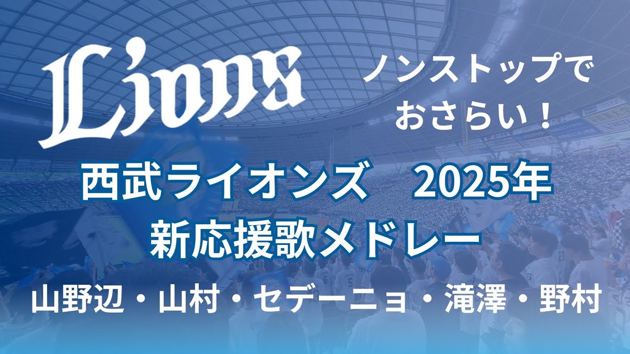 【2025年】西武ライオンズ新応援歌メドレー(山野辺・山村・セデーニョ・滝澤・野村) ハーモニーフルスイングです! これからもライオンズに関する動画をアップしていくのでチャンネル登録よろしくです! #ライオンズ #西武ライオンズ #埼玉西武ライオンズ #応援歌 #応援歌メドレー #プロ野球 #セデーニョ #滝澤夏央 #ベルド#新応援歌2025Saitama Seibu Lionsベルーナドームメドレーライオンズ埼玉西武ライオンズ応援応援歌応援歌メドレー西武西武ライオンズ NPBHUB.COM | The Fanbase of Nippon Baseball & Nippon Professional Baseball