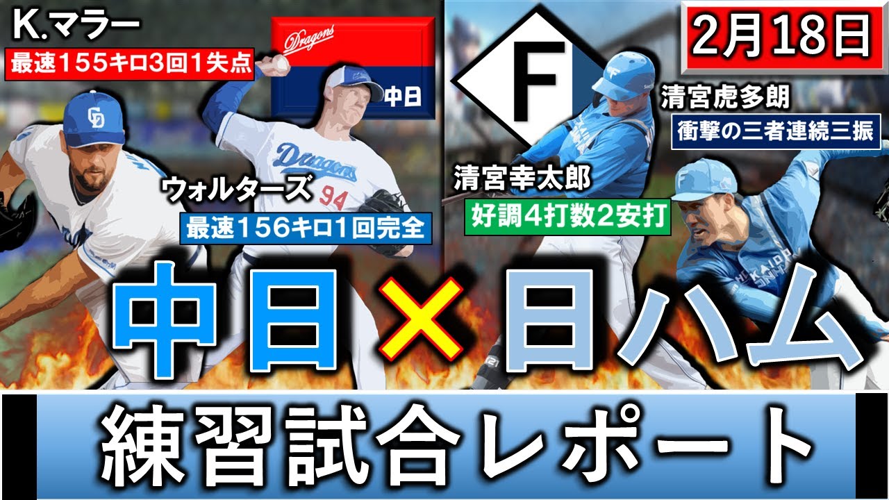 2月18日春季キャンプ「中日×日本ハム」練習試合レポート 中日は新外国人『マラー』が3回1失点&『ウォルターズ』が最速156キロ完全投球!日ハムは『清宮幸太郎』が2安打&『清宮虎多朗』が3者連続三振!
