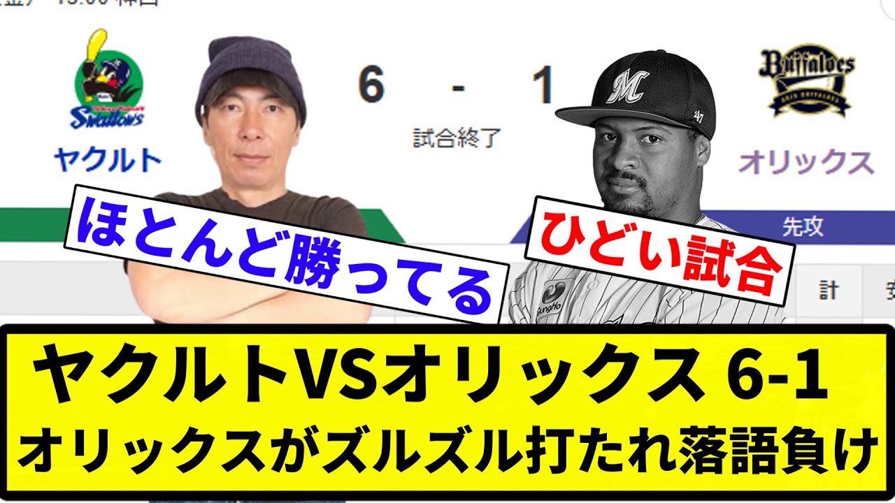 【ズルズル負けや】ヤクルトVSオリックス 6-1 オリックスがズルズル打たれ落語負け【プロ野球反応集】【2chスレ】【なんG】