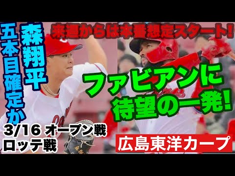 【広島東洋カープ】3/16オープン戦 ロッテ戦 森が粘投で五本目確定か!? ファビアンに待望のホームランが出て快勝! 【森翔平】【サンドロ・ファビアン】【新井貴浩】【カープ】