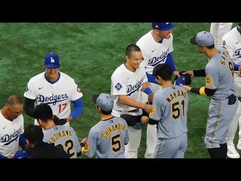 【帽子交換】阪神ナインとドジャースナインがお互いの帽子を交換 大谷翔平と交換したのは同い年の近本光司