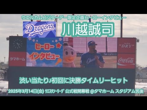 20250314 川越誠司のヒーローインタビュー【決勝打】【ウエルカムビジターデー限定企画】中日ドラゴンズ2軍@タマホーム スタジアム筑後[ウエスタン・リーグ 2軍戦]タマスタ筑後