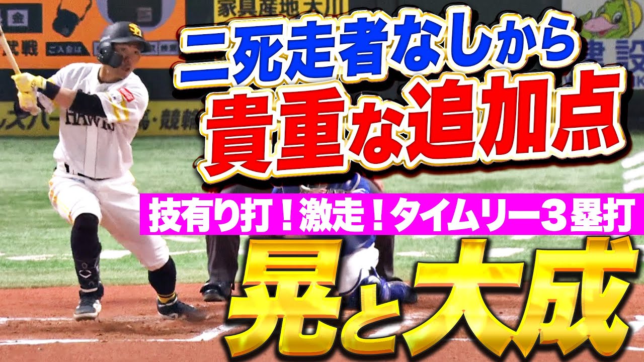 【トゥントゥントゥン…】2死走者なしから『代打・中村晃の技ありヒット→ 牧原大成のタイムリー三塁打!』