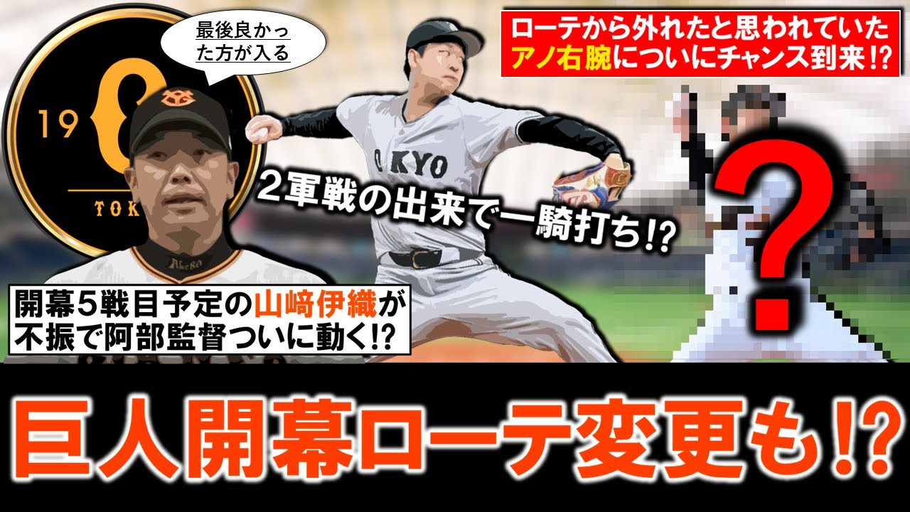 【ついにアノ右腕にチャンス到来!?】巨人開幕ローテ変更の可能性浮上!開幕5戦目先発予定だった『山﨑伊織』がOP戦防御率6点台と不振の中、阿部監督が開幕ローテを外れる可能性について言及し今後はどうなる?