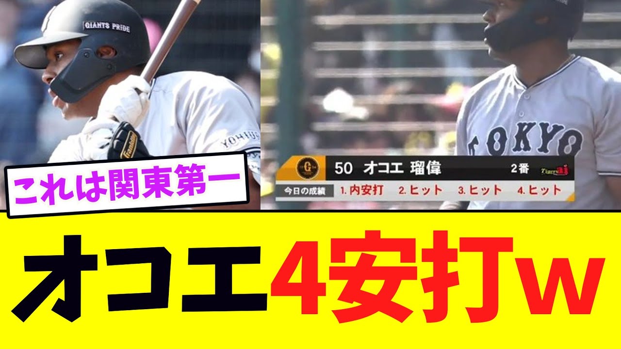 【覚醒】巨人・オコエ、4打数4安打!!!!!! この動画は野球に関するトピックをまとめたオリジナル動画です。 #野球#プロ野球 #巨人 #阪神タイガース #ソフトバンクホークス #中日ドラゴンズ #日本ハムファイターズ #広島カープ #ジャイアンツ #楽天イーグルス #横浜denaベイスターズ 「VOICEVOX:四国めたん」 Tohoku Rakuten Golden Eaglesオコエ瑠偉東北楽天ゴールデンイーグルス NPBHUB.COM | The Fanbase of Nippon Baseball & Nippon Professional Baseball
