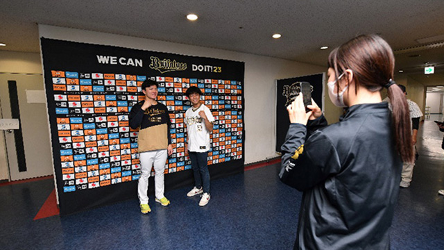 バファローズ選手1名と、お客様ご自身のお手持ちのカメラもしくはスマートフォン等で撮影させていただきます。