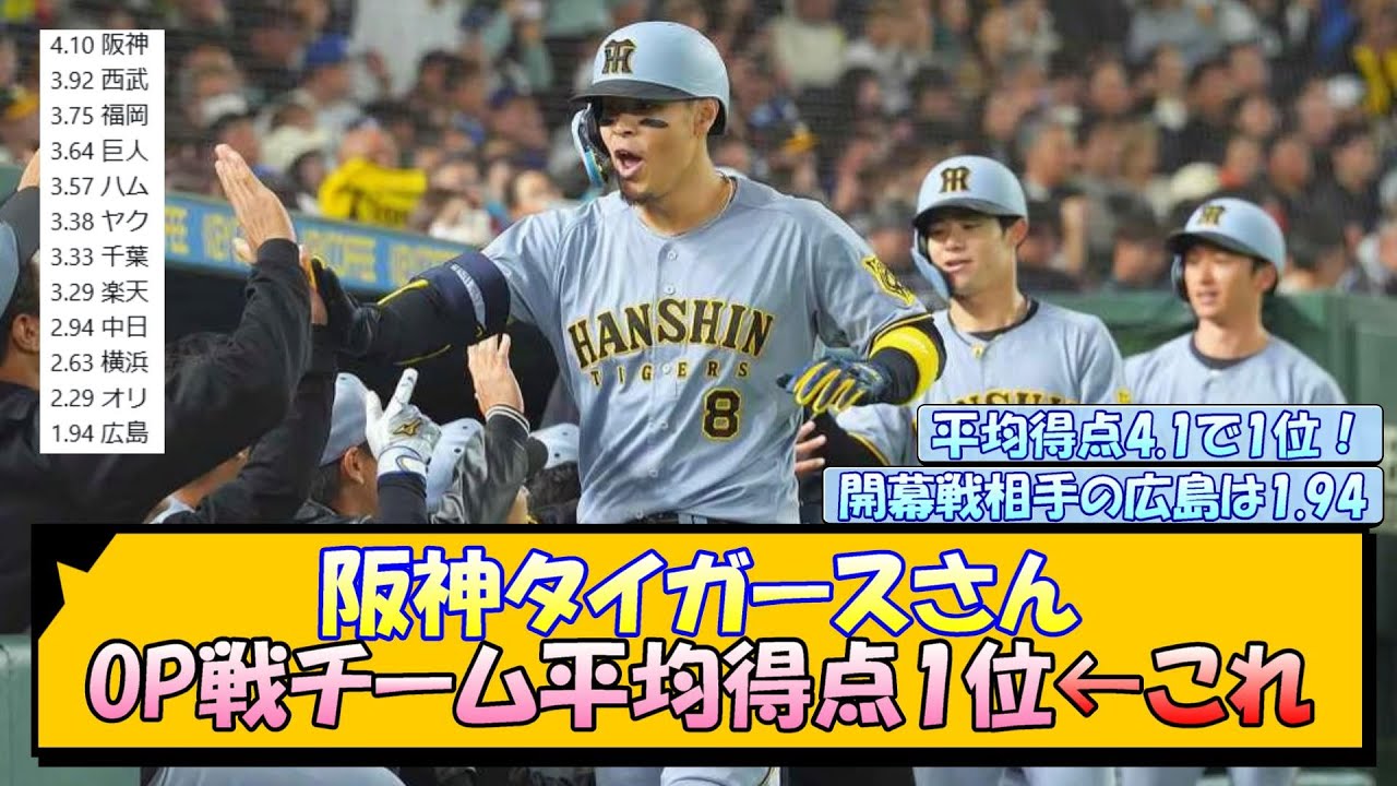 阪神タイガースさん OP戦チーム平均得点1位←これ【なんJ/2ch/5ch/ネット 反応 まとめ/阪神タイガース/藤川球児/プロ野球】