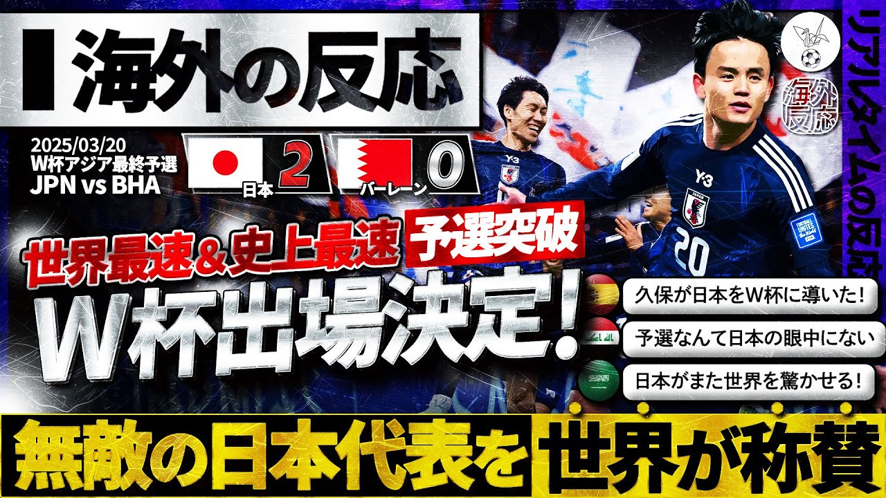 【海外の反応】”無敵の日本代表”世界最速&史上最速でのW杯予選突破!最終予選バーレーン戦に対しての海外のリアルな反応!『結局日本は強い!』