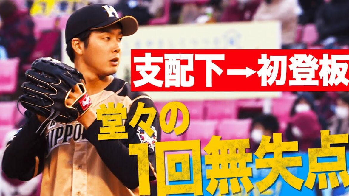 先日支配下登録を勝ち取った北海道日本ハム・長谷川凌汰が堂々のデビュー。4番手として登板すると、1回を3人で無失点に抑える好投を見せた。