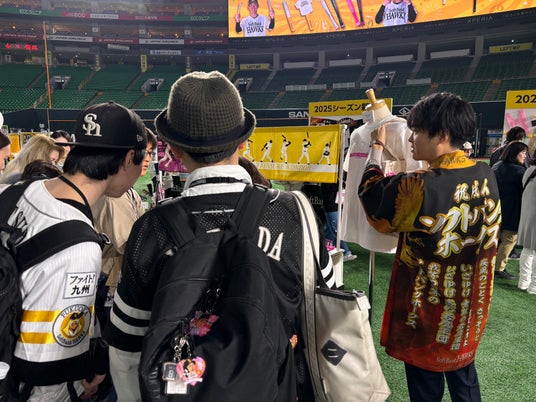 福岡ソフトバンクホークスでは、本日3月23日(日)に2025シーズングッズ・グルメお披露目会を実施しました。ホークス公式ファンクラブ「クラブホークス」会員の中から抽選で50組100名の方にご参加いただき、ソフトバンクホークス誕生20周年を記念したグッズやグルメをはじめ、最新のオリジナルグッズや話題のグルメが一堂に会し、その魅力をアピールしました。