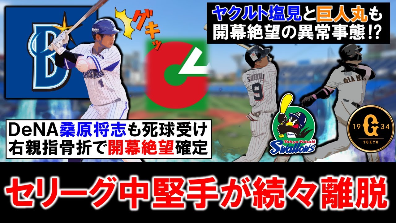 【この2日間で3人目…!?】横浜DeNA『桑原 将志』が右手親指骨折で開幕絶望確定へ…巨人『丸佳浩』やヤクルト『塩見』らも開幕絶望でセリーグの中堅手が続々離脱の異常事態発生!?