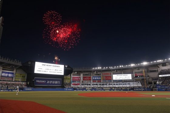 ビッグフラッグ実行委員会と千葉ロッテマリーンズ応援団協力のもと、試合演出の一環として試合開始前の午後6時25分頃に「ONE HEART MARINES」と書かれたビッグフラッグをライトスタンドに掲出する。
