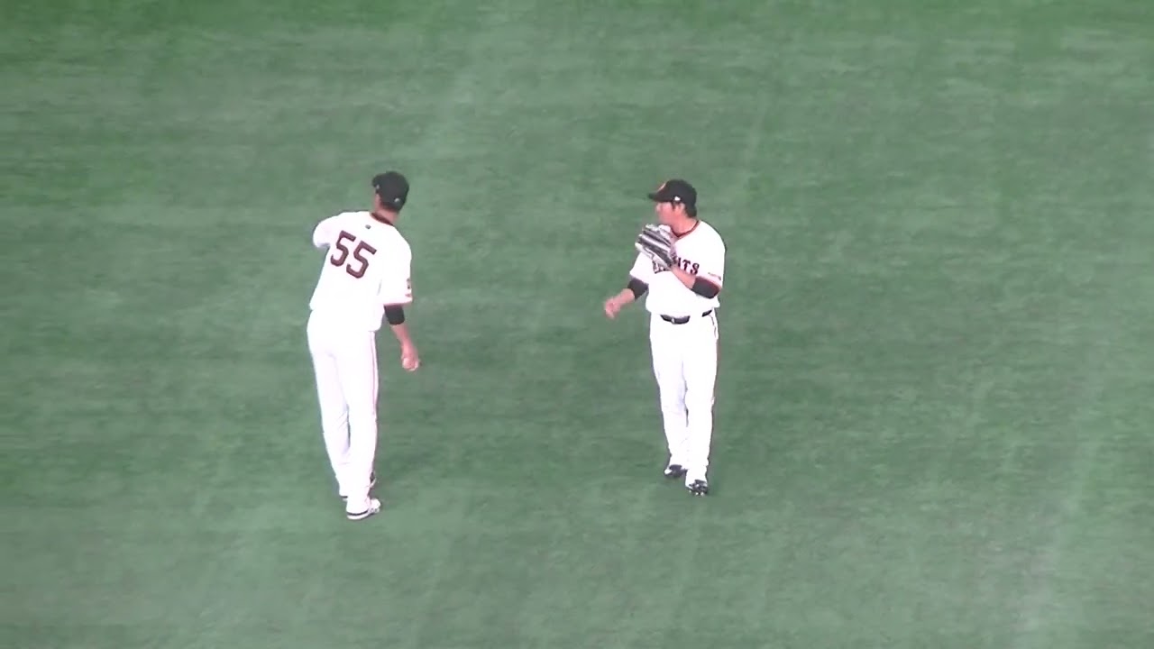 外野の守備に向かう秋広優人や長野久義<読売ジャイアンツ 対 千葉ロッテマリーンズ 2025年3月21日>