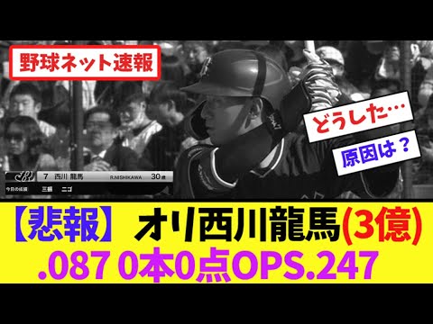 【悲報】オリ西川龍馬(3億)打率.087 0本0点OPS.247【ネット反応集】
