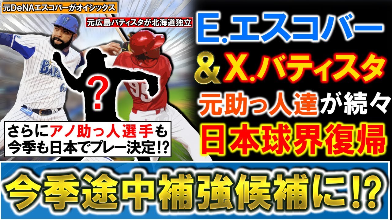 【注目の緊急補強候補に!?】元DeNA『エドウィン・エスコバー』がオイシックス&元広島『ザビエル・バティスタ』が北海道士別にそれぞれ入団し日本球界復帰!今後結果を残せばシーズン途中にNPB復帰も!?