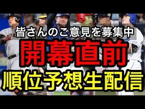 【ちな鯉集合】開幕直前で今季の順位予想!主力選手の成績、新外国人や新人選手の成績についても予想します。