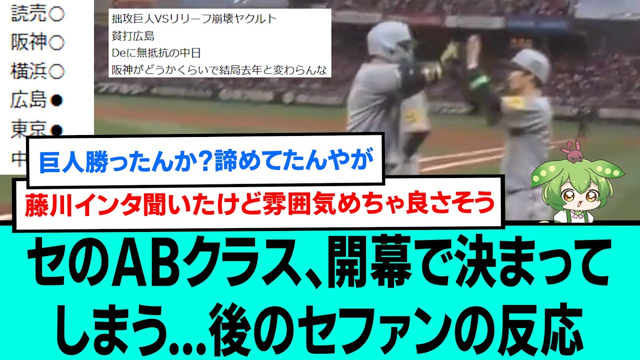 【悲報】セのABクラス、開幕で決まってしまう…後のセファンの反応【阪神タイガース/プロ野球なんJ2ch5chスレまとめ/セリーグ/佐藤輝明第1号ホームラン/村上頌樹/岩崎優/2025年3月28日】
