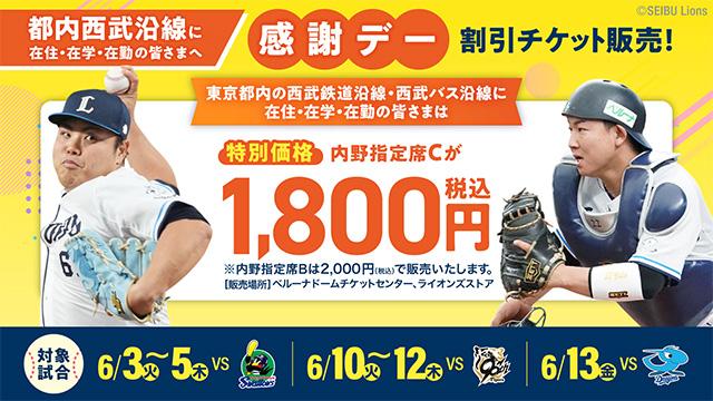 【埼玉西武】【4/14(月)販売開始】日本生命セ・パ交流戦の平日7試合で『都内西武沿線感謝デー割引チケット』を販売! – スポーツナビ スポーツナビ【4/14(月)販売開始】日本生命セ・パ交流戦の平日7試合で『都内西武沿線感謝デー割引チケット』を販売! seibulions.jp【埼玉西武】【4/14(月)販売開始!】『FC学割』日本生命セ・パ交流戦は6/3(火)~13(金)の7試合が対象! スポーツナビ【5/19(月)から受付開始!】6/3(火)~13(金)までの平日7試合で『チケット半額Lポイント交換キャンペーン』の実施が決定! seibulions.jp