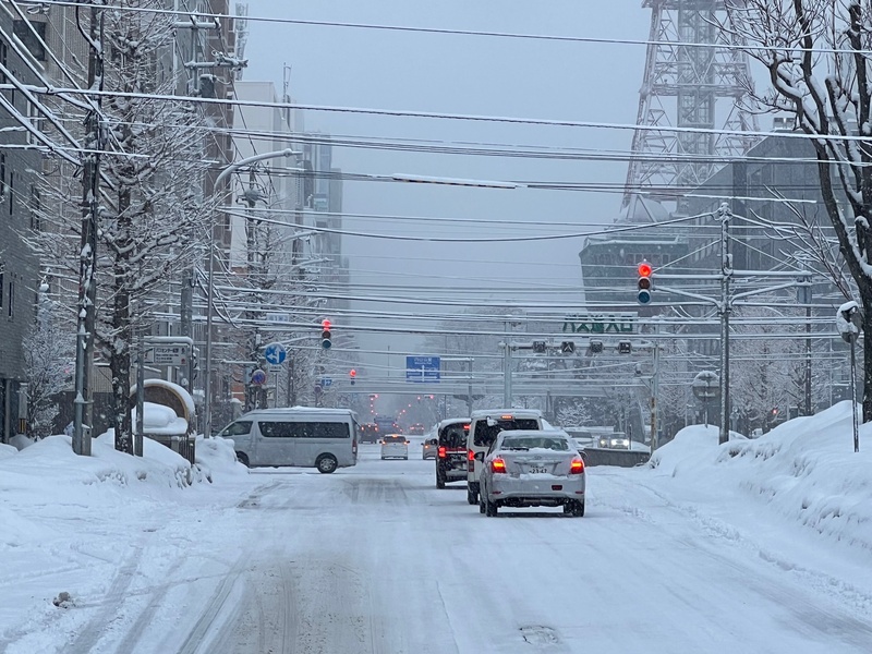 フードをかぶり、肩をすぼめて小さくなりながら歩く。これが北海道スタイルなのかと知る。