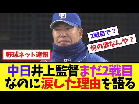 中日・井上監督、まだ2戦目なのに涙した理由を語る【ネット反応集】