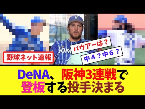 DeNA、阪神3連戦で登板する投手決まる【ネット反応集】