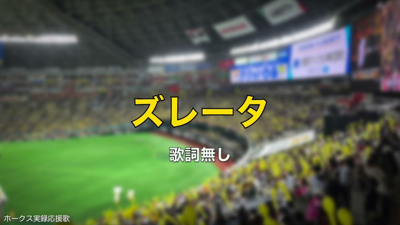 【OB戦】福岡ソフトバンクホークス フリオ・ズレータ 応援歌 25.3.23 ズレータ選手の応援歌は様々な常連歌詞(裏歌詞)が存在していましたね。 試合途中、ビジョンに映し出されていた「ゆけゆけ、我らの夢を…」の歌詞は公式ではないのでご注意を。 ちなみに、私含め周りのお客さんも下記のコールで歌っており、非常に懐かしく思えました。 …♪ ズレータ!…オイ!オイ!ズレータ! …♪Oh Let’s Go!ズレータ!ズレータ! 2025.3.23 みずほPayPayドーム福岡 Fukuoka SoftBank Hawksズレータ 応援歌ホークス OB戦ホークス 応援歌福岡ソフトバンクホークス NPBHUB.COM | The Fanbase of Nippon Baseball & Nippon Professional Baseball