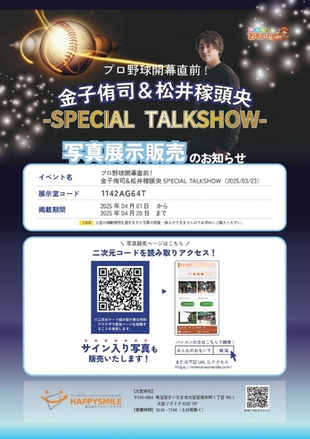 ・展示販売企画名:「プロ野球開幕直前! 金子侑司&松井稼頭央 SPECIAL TALKSHOW」