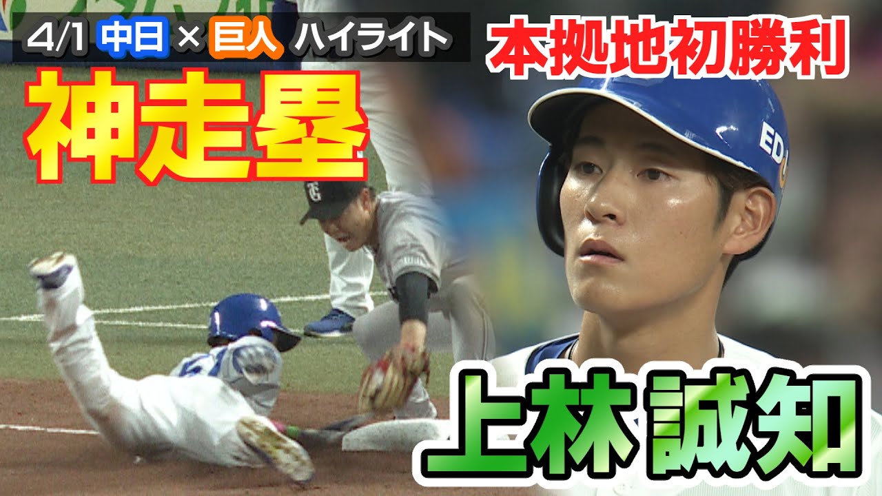 上林が神走塁! 本拠地初勝利!!【4/1 中日×巨人 ハイライト】